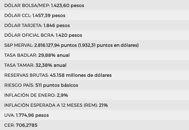 Con el dólar que se mantiene en mínimos de los últimos meses, la tasa de Lecaps que opera por arriba del 30% y una inflación esperada del 25% según analistas de LatinFocus, parece que el carry continuará como la mejor opción. La divisa norteamericana se mantuvo en estos precios en los meses de mayor demanda, por lo que se estima que en marzo y abril con la cosecha gruesa, la oferta sea aún mayor y el precio no presione al alza.
